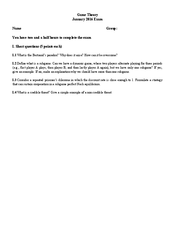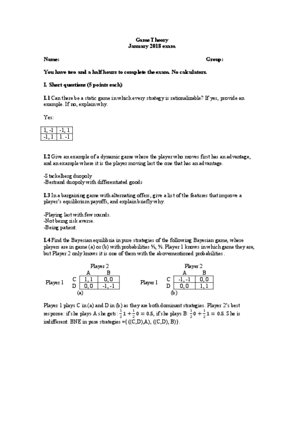 He publicado nuevos examenes de 2º Teoria de los Juegos: Exámenes