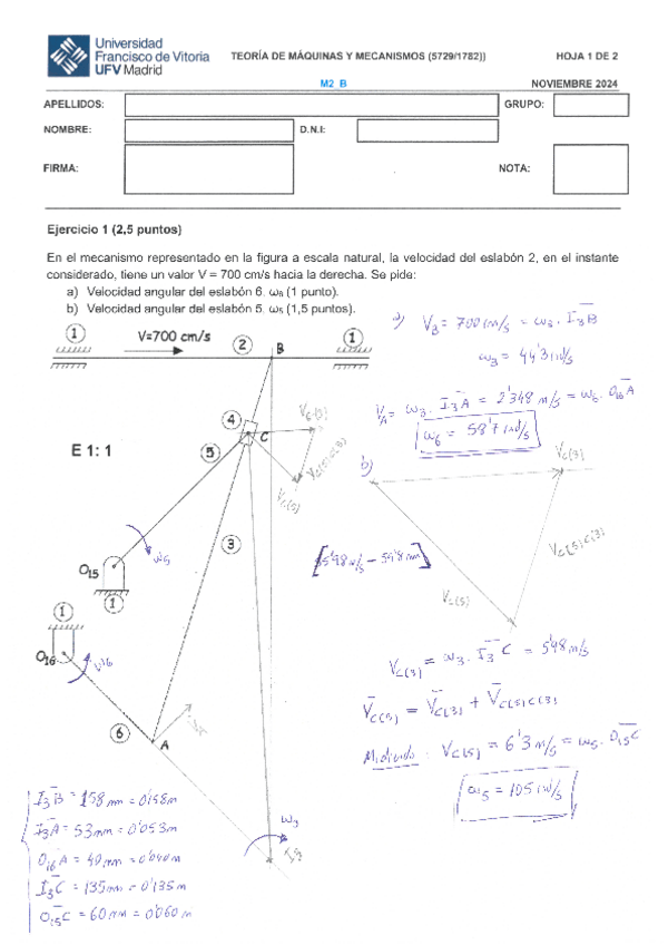 He publicado nuevos apuntes de 3º Teoría de Máquinas y Mecanismos: EJERCICIO-VELOCIDADES.pdf