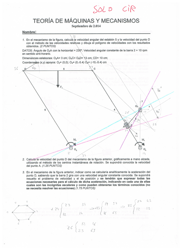 He publicado nuevos examenes de 2º Teoría de Máquinas y Mecanismos: Ejercicios de CIR.pdf