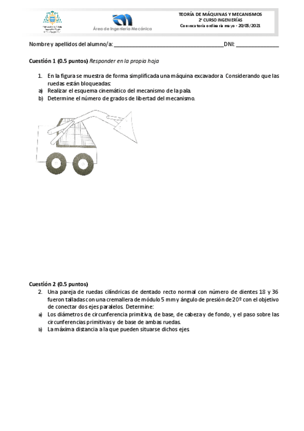 He publicado nuevos examenes de 2º Teoría de Máquinas y Mecanismos: 20-21-TMM-Examen-Junio-2021.pdf