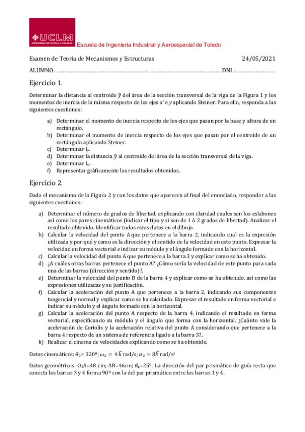 He publicado nuevos examenes de 2º Teoría de Máquinas y Mecanismos: Exámenes anteriores