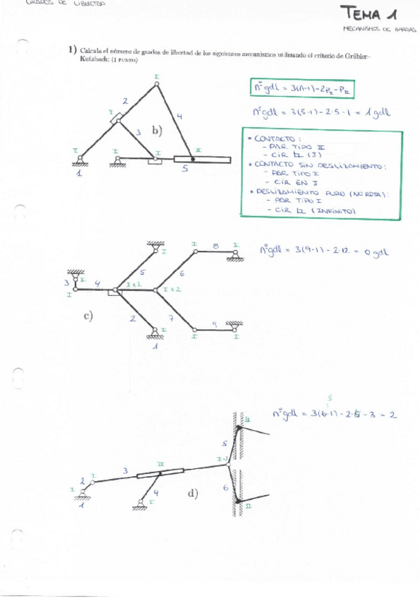 Ejercicios clave para el examen sobre el tema 1 (mecanismos de barras)