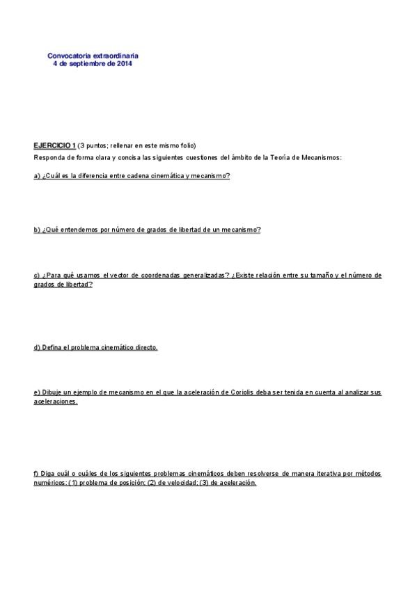 He publicado nuevos examenes de 2º Teoría de Mecanismos: EXAMEN SEPTIEMBRE 2014 + SOLUCIONES