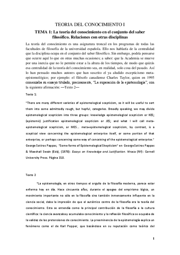 Teoría del Conocimiento I