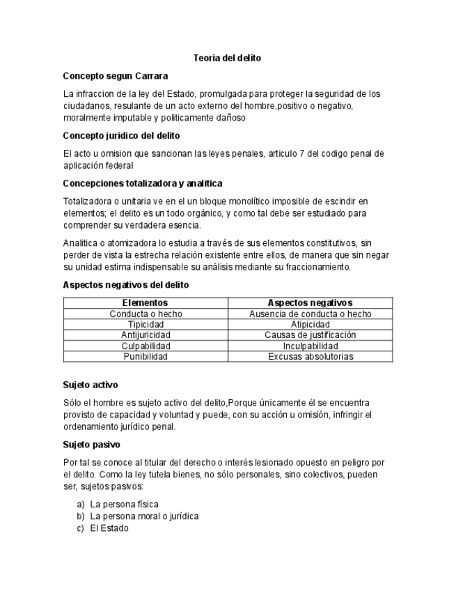 un documento biene estructurado donde se abordan temas fundamentales para poder dar inicio al estudio del derecho penal, en este caso apuntes de teoría del delito
