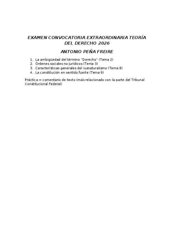 EXAMEN CONVOCATORIA EXTRAORDINARIA TEORÍA DEL DERECHO 2026