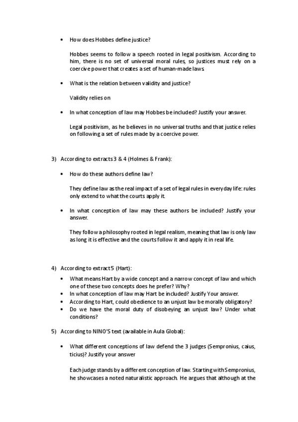 FINAL EXAM - THEORY OF LAW AND SOCIOLOGY OF LAW DADE UC3M- Theory of law and sociology of law. Profesor Javier Dorado