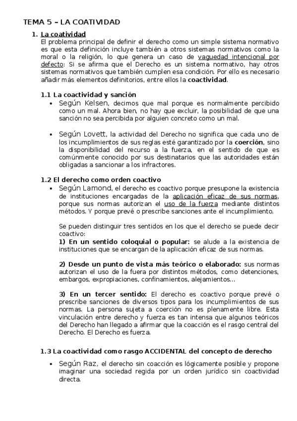 - APUNTES DEL MANUAL - COACTIVIDAD - SANCIÓN - EL DERECHO COMO ORDEN COACTIVO - SANCIÓN MORAL, SOCIAL, RELIGIOSA