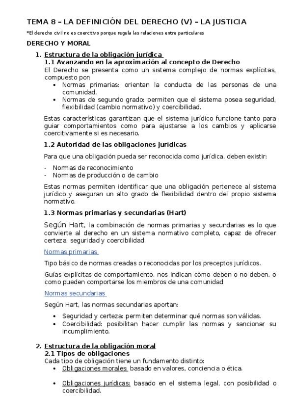 - APUNTES DEL MANUAL - EL CONCEPTO DE DERECHO - LA NORMA JURÍDICA COMO PROPOSICIÓN PRESCRIPTIVA - EL DERECHO COMO SISTEMA NORMATIVO - NORMAS PRIMARIAS Y SECUNDARIAS - SISTEMAS NORMATIVOS NO JURÍDICOS