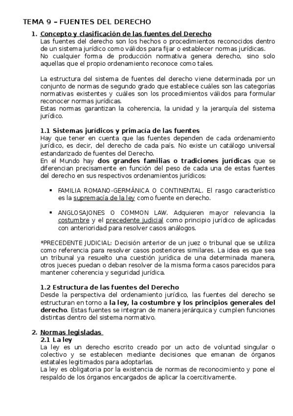 1. Concepto y clasificación de las fuentes del Derecho 2. Normas legisladas 3. La costumbre jurídica 4. Los principios jurídicos 5. Fuentes legales en sentido estricto *¡ATENCIÓN! ESTÁ COMPLEMENTADO TAMBIÉN CON PPTX DE LA PROFESORA PAULA REYES!