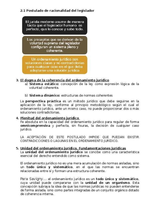 1. La concepción sistemática del ordenamiento jurídico 2. Concepción estática y dinámica del ordenamiento jurídico 3. El dogma de la coherencia del ordenamiento jurídico 4. Plenitud del ordenamiento jurídico 5. Unidad del ordenamiento jurídico. Fundament