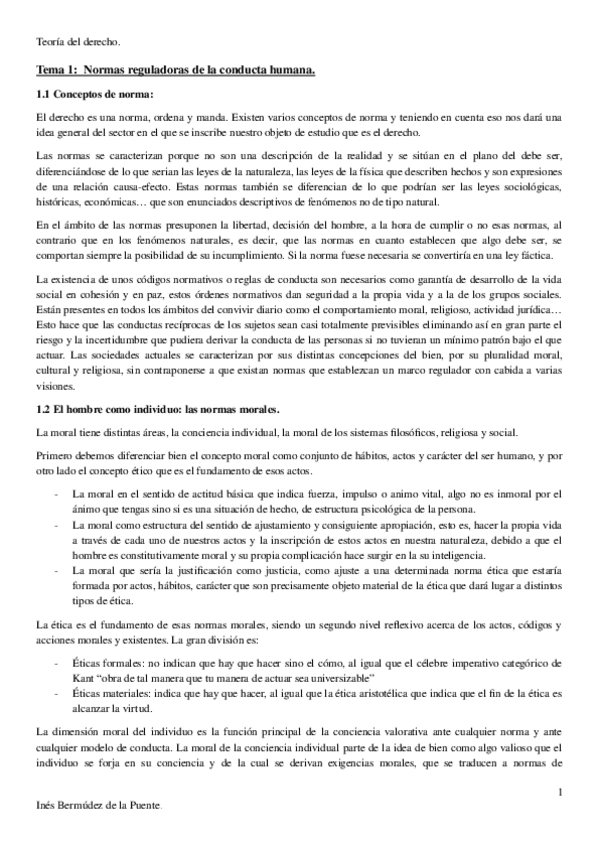Resumen del Tema 1-Normas reguladoras de la conducta humana