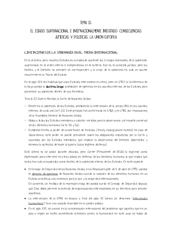 Resumen de la LECCIÓN 15 - El Estado supranacional e internacionalmente integrado: consecuencias jurídicas y políticas. La Unión Europea (Cap. XXIV de EDDP).