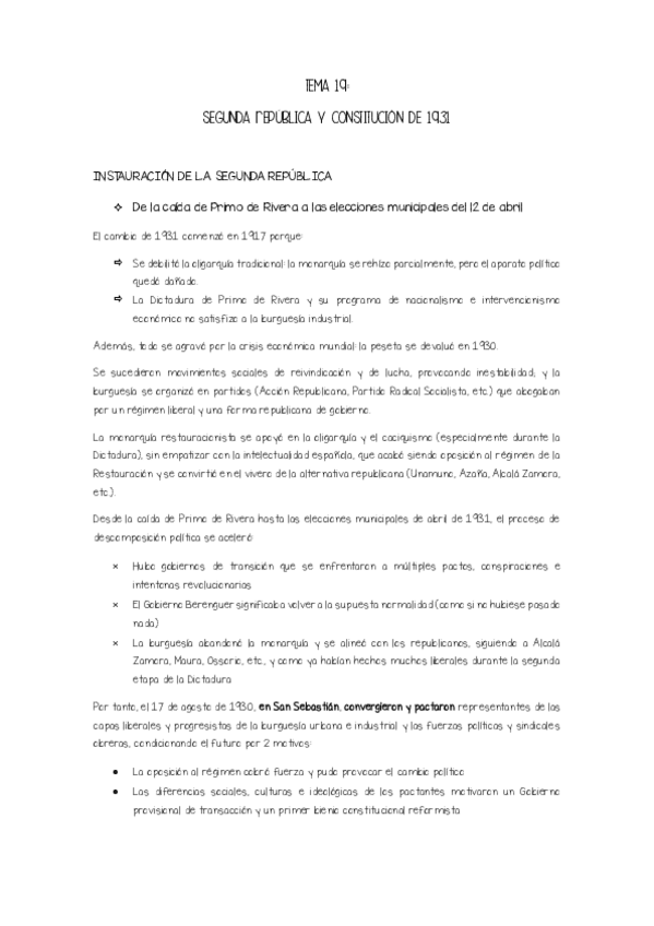 Resumen de la LECCIÓN 19 de la cuota de Tenorio: (Cap. VI de CHE): Segunda República y Constitución de 1931.