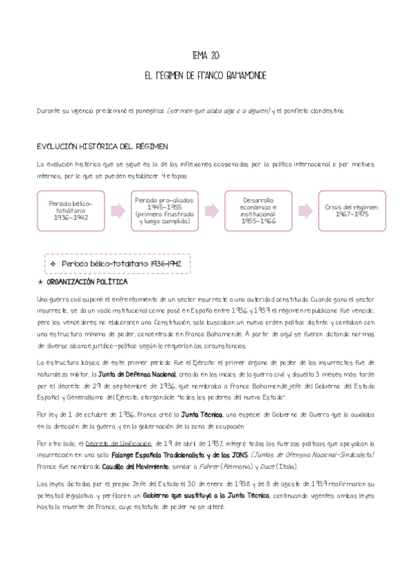 Resumen de la LECCIÓN 20: El régimen de Franco Bahamonde