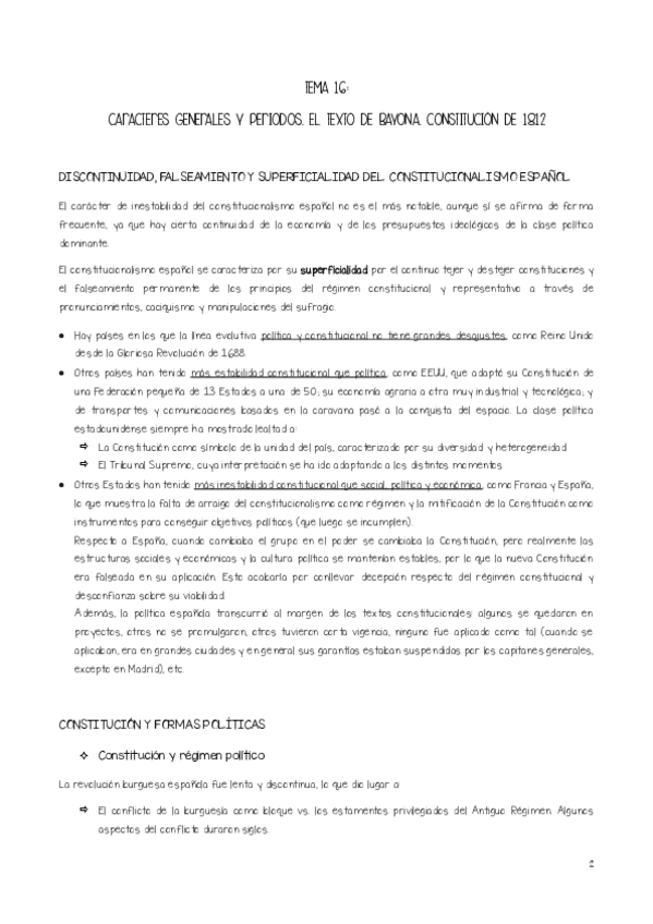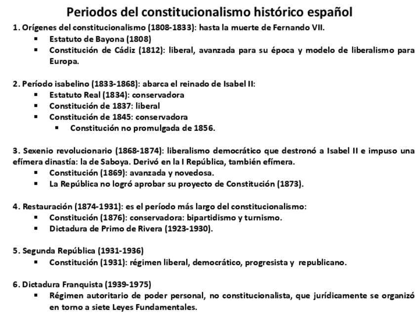 Resumen de la LECCIÓN 16 de la cuota de Tenorio: Caracteres generales y periodos. El texto de Bayona. Constitución de 1812. (Caps 1 y 2 CHE)