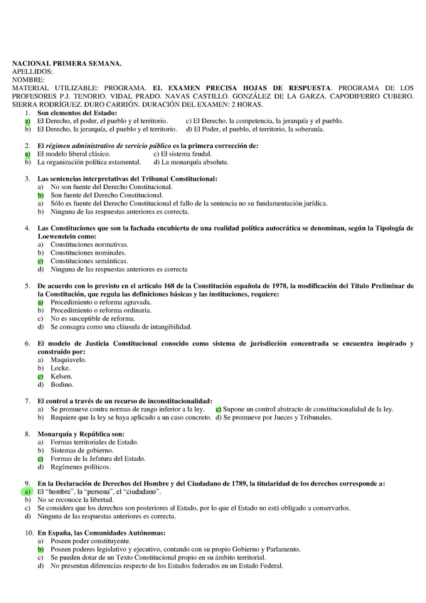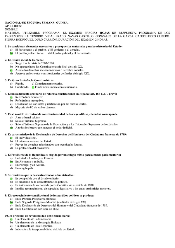 EXAMENES RESUELTOS AÑO 2018-2019 TEORÍA DEL ESTADO CONSTITUCIONAL