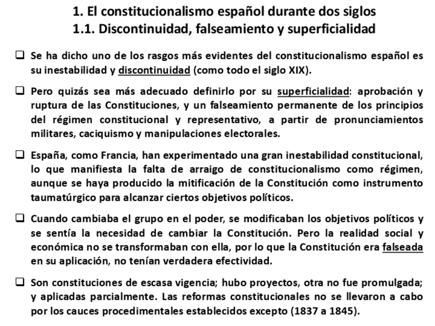 Resumen de la LECCIÓN 17 de la cuota de Tenorio: El Estatuto Real y Constituciones de 1837, 1845 y 1869. (Caps III y IV CHE)
