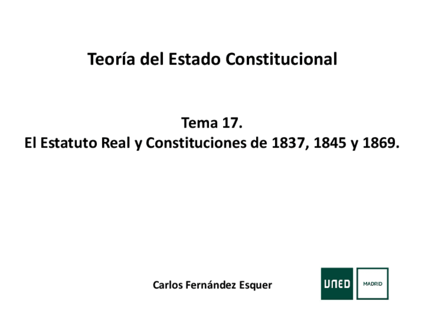 He publicado nuevos apuntes de 1º Teoría del Estado Constitucional: Temas17y18ElEstatutoRealyConstitucionesd230129182435.pdf