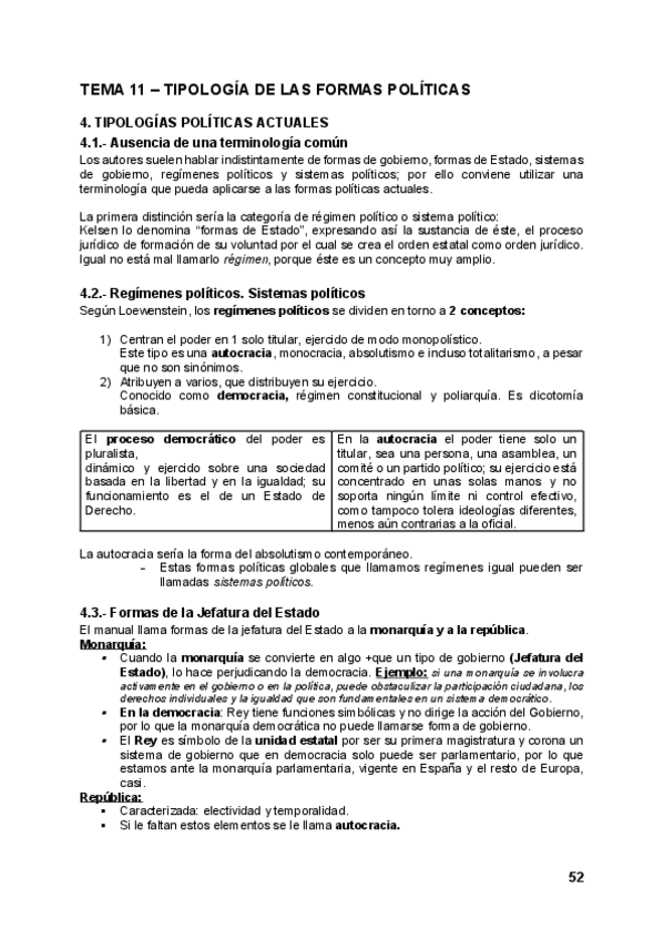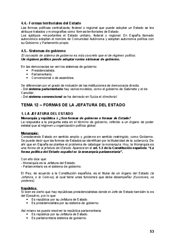 Resumen de la LECCIÓN 7 de la cuota de Tenorio: Las formas políticas. Formas de la Jefatura del Estado (Caps. XI y XII de Democracia de Partidos). CONTENIDO PARA EXAMEN