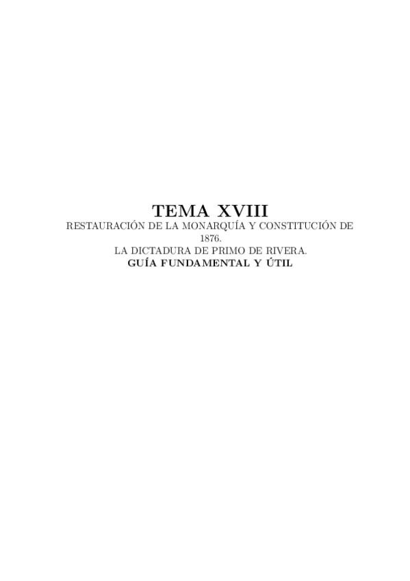 He publicado nuevos apuntes de 1º Teoría del Estado Constitucional: TEMA-XVIII.-RESTAURACION-DE-LA-MONARQUIA-Y-CONSTITUCION-DE-1876.-DICTADURA-DE-PRIMO-DE-RIVERA-GUIA-FUNDAMENTAL-Y-UTIL.pdf