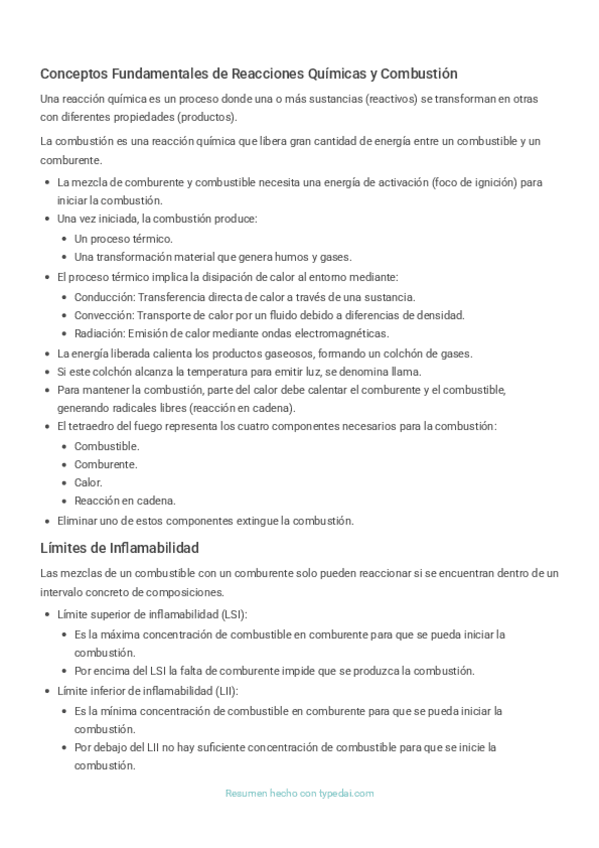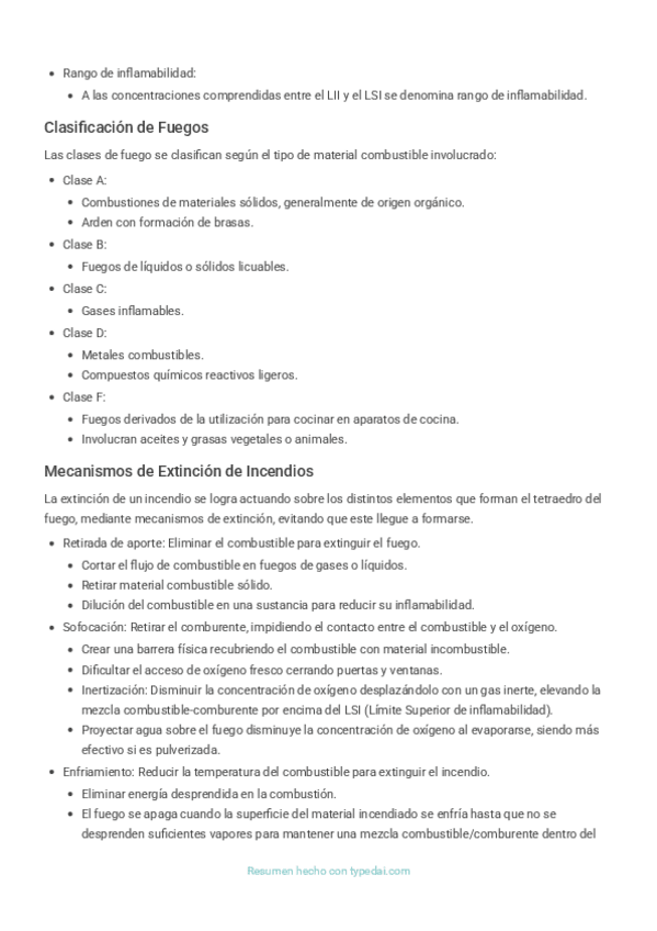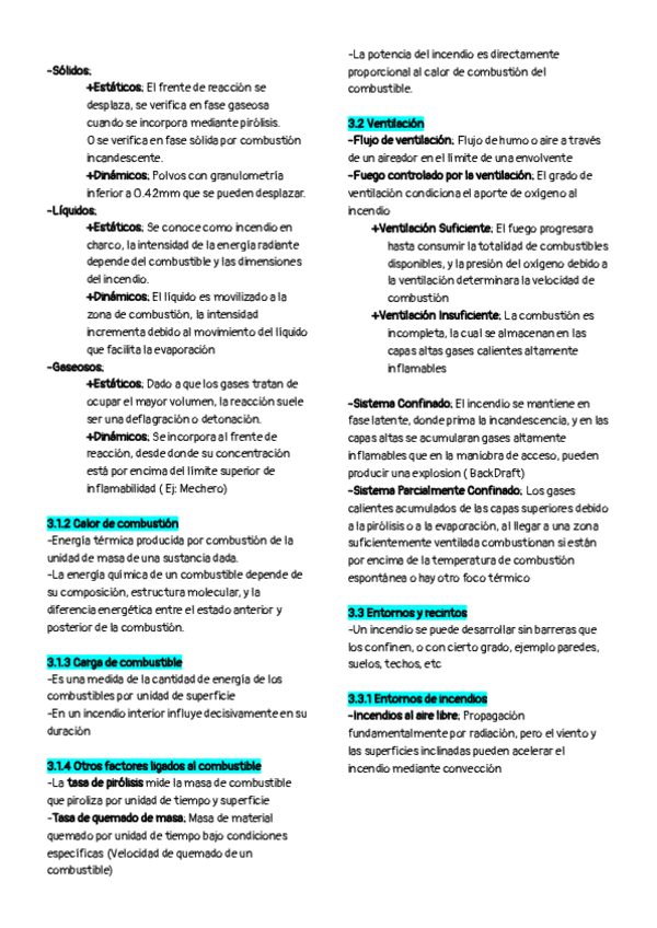 Resumen de la teoria del fuego Temario Navarra
