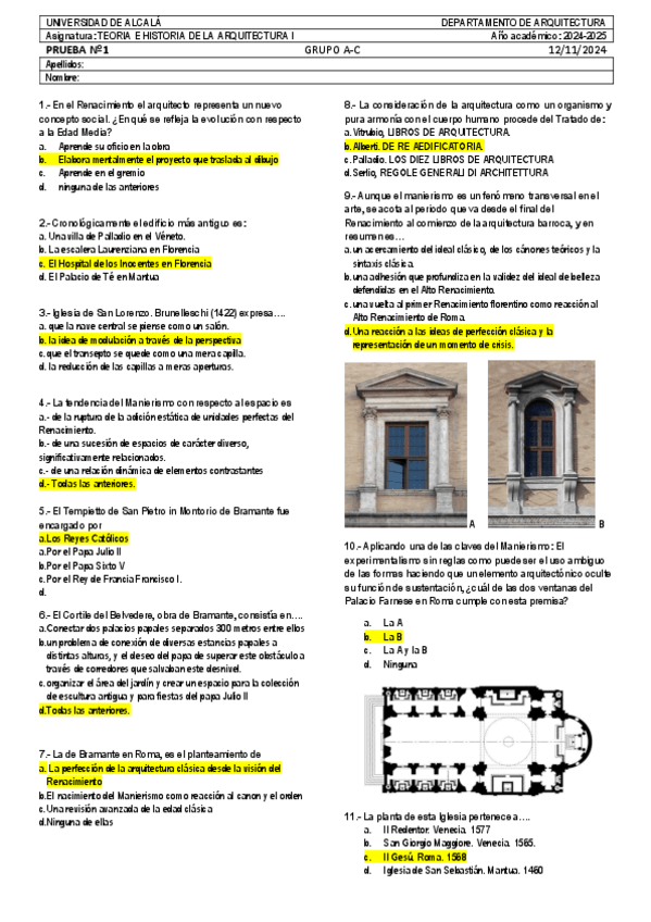He publicado nuevos examenes de 2º Teoría e historia de la arquitectura I: PRUEBA 1_20241112_GRUPO B_TeHAI_RESPUESTAS