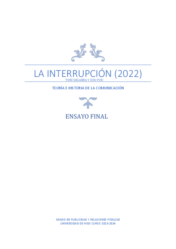 He publicado nuevos apuntes de 1º Teoría e Historia de la Comunicación: Ensayo-La-Interrupcion.pdf