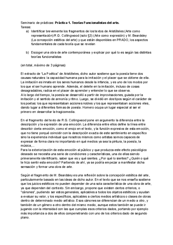 Práctica 1. Teorías Funcionalistas del arte de 1º. Profesora de Teoría del Arte Matilde Carrasco.