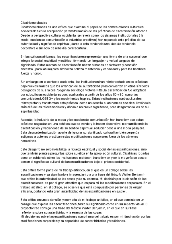 Sobre la institución europea y las escarificaciones de la cultura africana.
