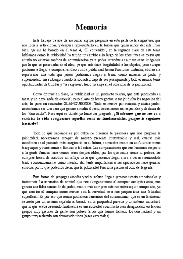 Este documento presenta un texto donde justifico la obra con el tema de la publicidad, me puso en el trabajo un 9,3. Os puede servir para usar algunos términos o pautas.