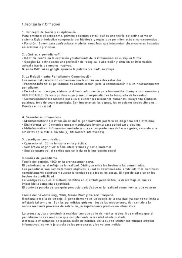 teoría del periodismo temario
