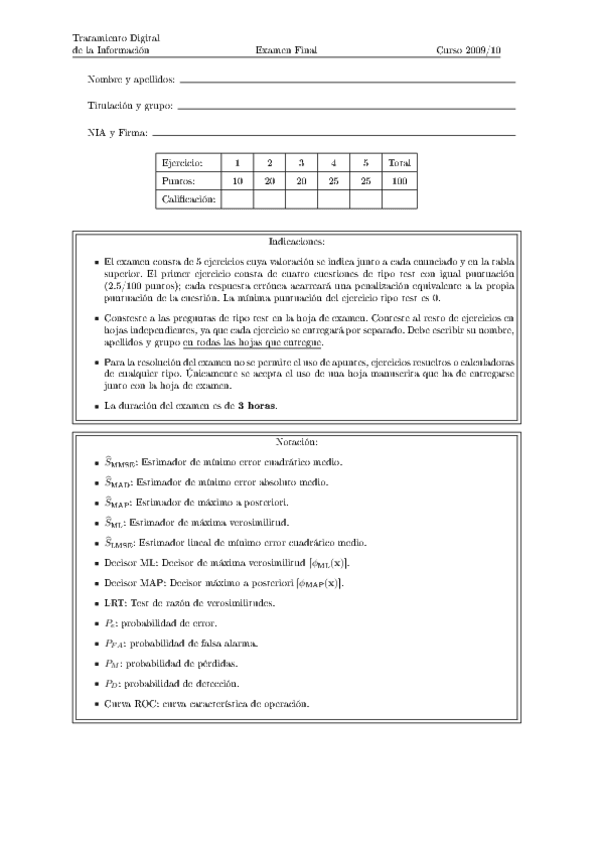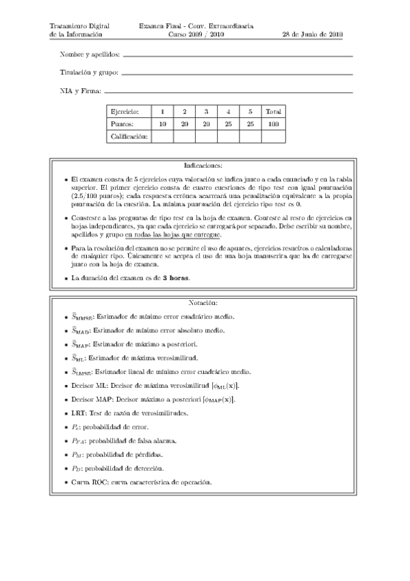 He publicado nuevos examenes de 3º Teoría moderna de la detección y estimación : Extraordinaria 2024-25 con soluciones.pdf
