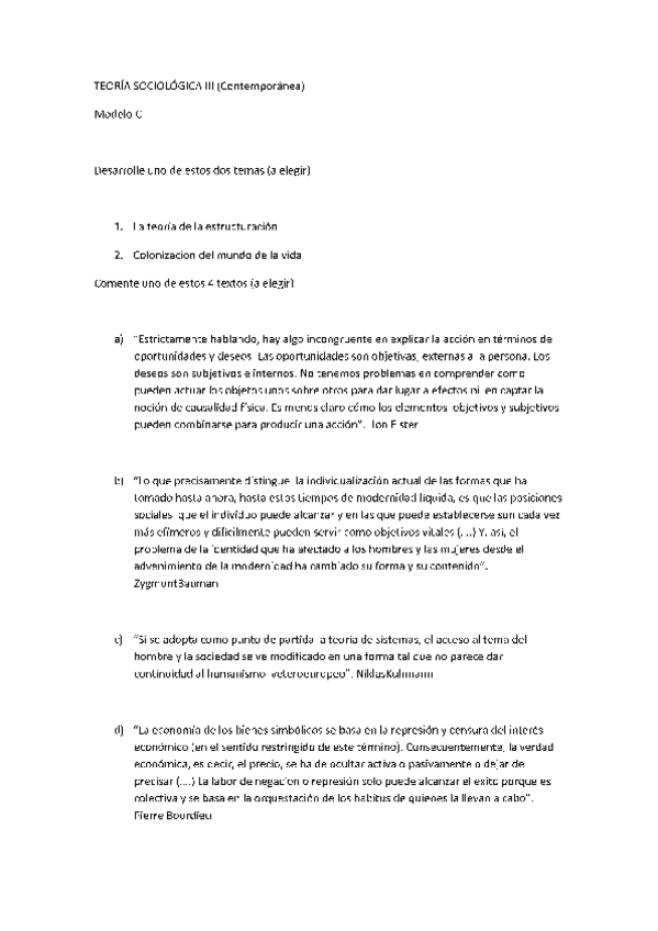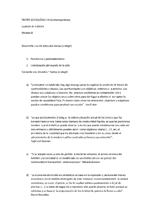 He publicado nuevos examenes de 4º Teoría Sociológica IIi: Contemporánea: Exámenes