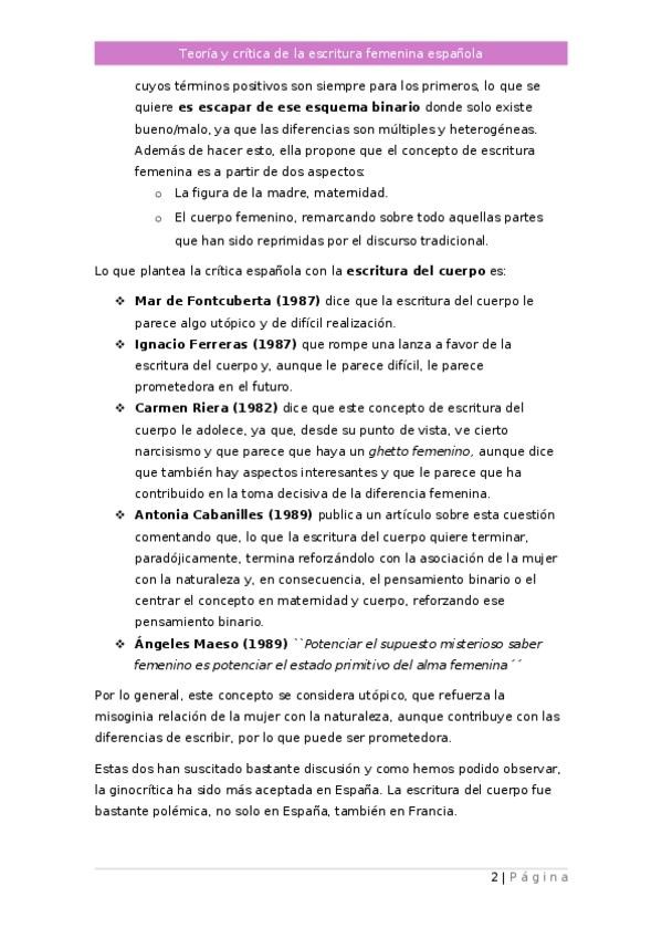 He publicado nuevos apuntes de 3º Teoría y Crítica de la Escritura Femenina en España: Tema-2.pdf