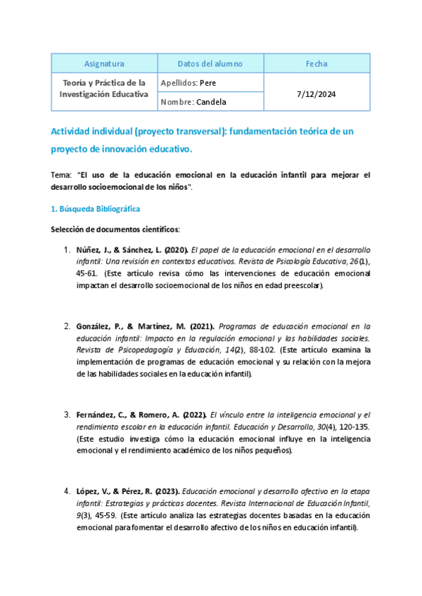 Actividad individual (proyecto transversal): fundamentación teórica de un proyecto de innovación educativo. Teoría y Práctica de la Investigación Educativa. Actividad corregida y con muy buena nota.