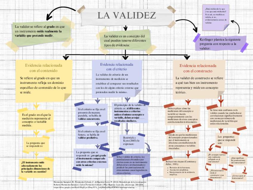 Mapa conceptual sobre Validez y tipos de evidencia para tener validez.