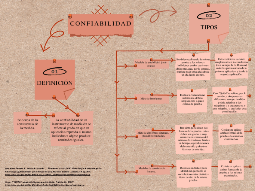 Mapa conceptual sobre la confiabilidad: definición, y tipos
