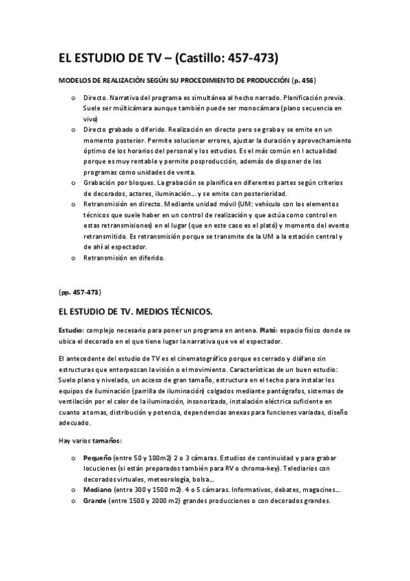 He publicado nuevos apuntes de 3º Teoría y técnica de la realización I: RESUMEN- EL ESTUDIO DE TV (CASTILLO 457-473).pdf
