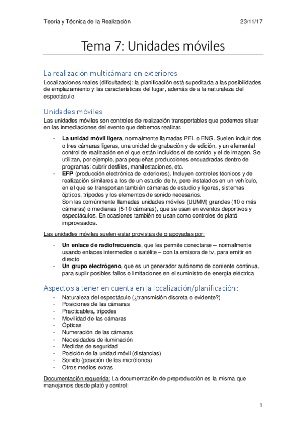 He publicado nuevos apuntes de 3º Teoría y técnica de la realización I: Tema 7 - Unidades móviles.pdf