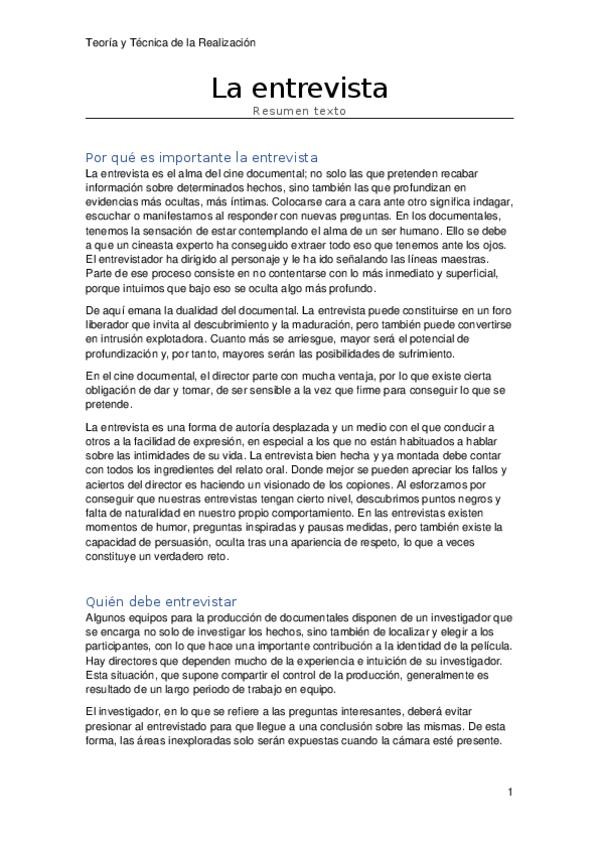 He publicado nuevos apuntes de 3º Teoría y técnica de la realización I: La entrevista - resumen texto.docx
