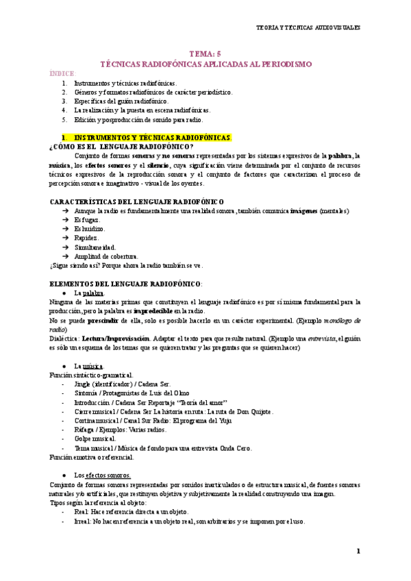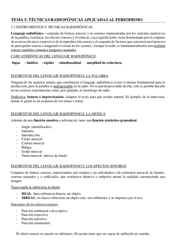 He publicado nuevos apuntes de 2º Teoría y Técnicas Audiovisuales Aplicadas Al Periodismo: TEMA 5 - RADIO