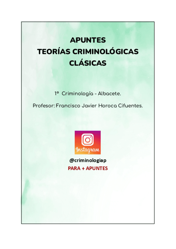 He publicado nuevos apuntes de 1º Teorías criminológicas clásicas: Teorías Criminológicas Clásicas