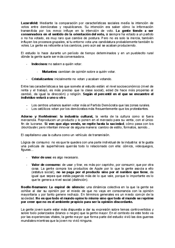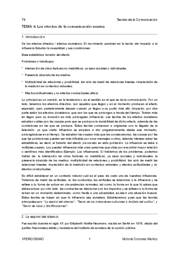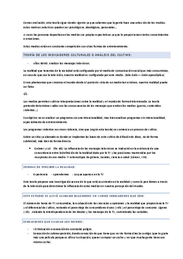 Incluye teorías de los efectos: espiral del silencio, índices culturales o indicadores de cultivo y usos y gratificaciones