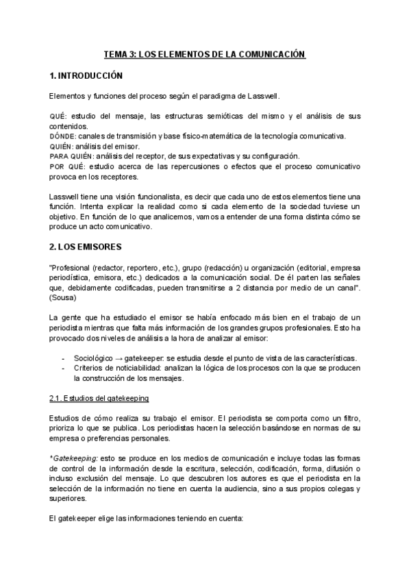 T3: Los elementos comunicativos (Teorías de la Comunicación)