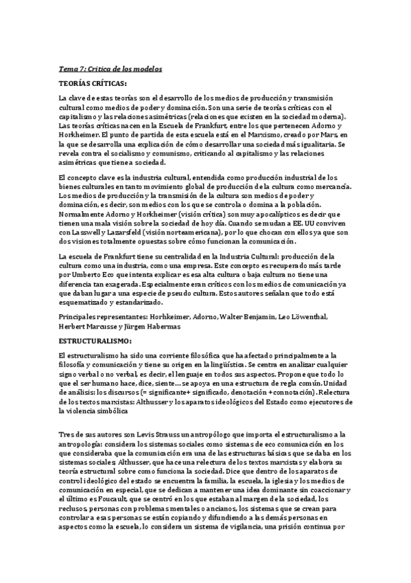 Apuntes sobre el T7 de Teorías de la Comunicación (Teorías críticas)