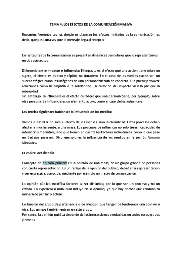 Resumen del tema 4 de Teorías de la Comunicación, curso 2022-2023.