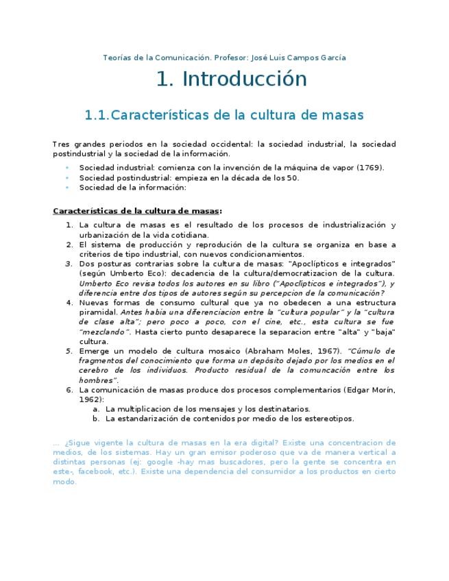 Temario completo Teorías de la Comunicación