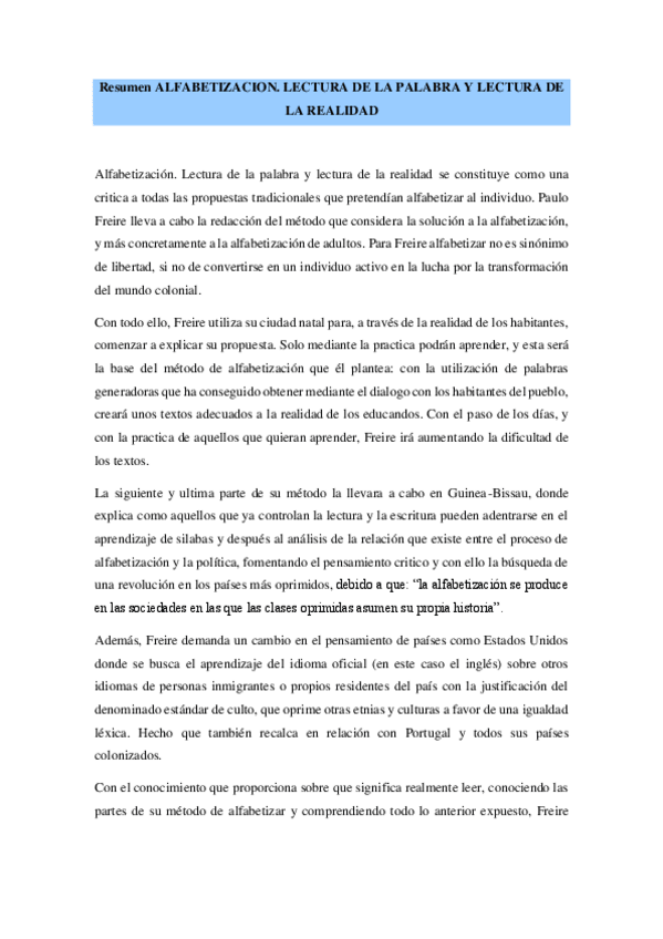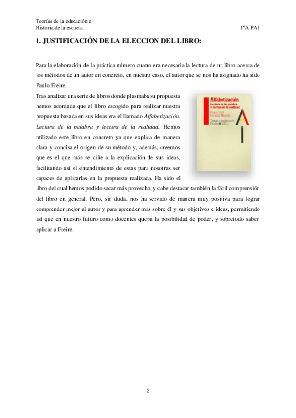 He publicado nuevos practicas de 1º Teorías de la Educación e Historia de la Escuela: Resumen-Libro-Freire-TEORIAS-DE-LA-EDUCACION.pdf