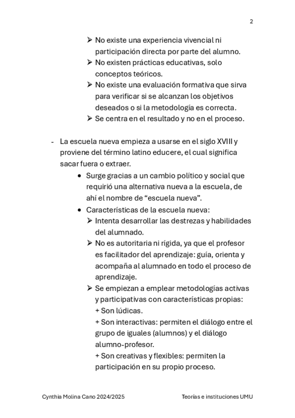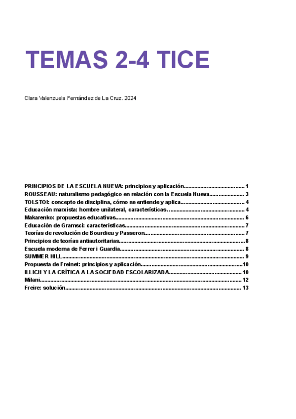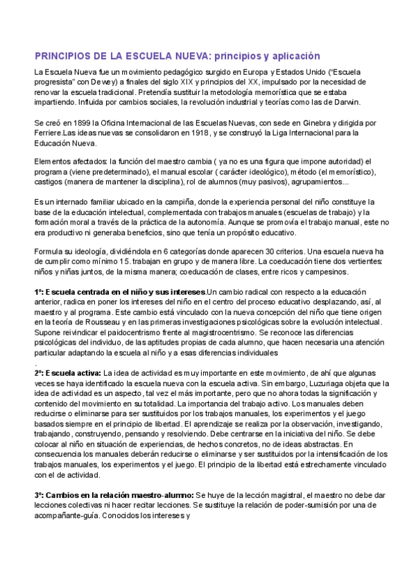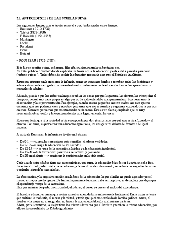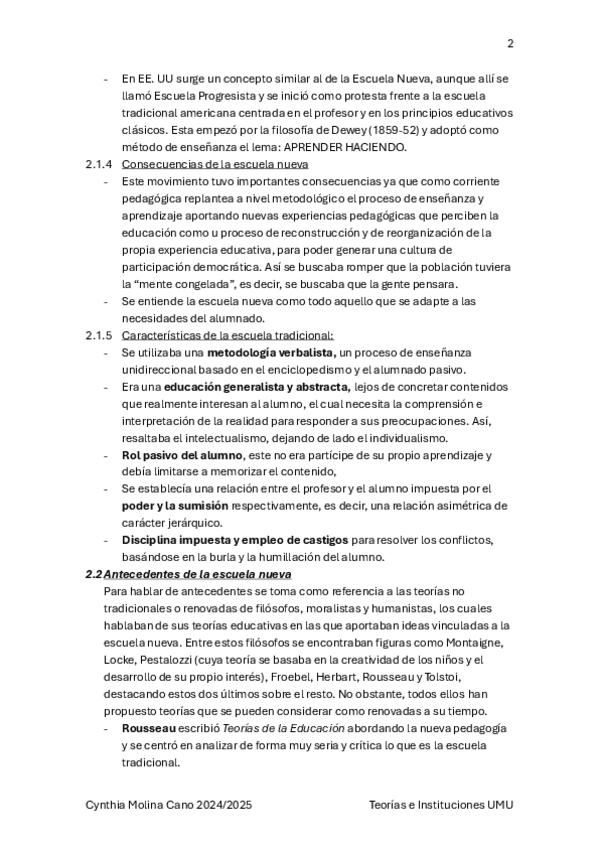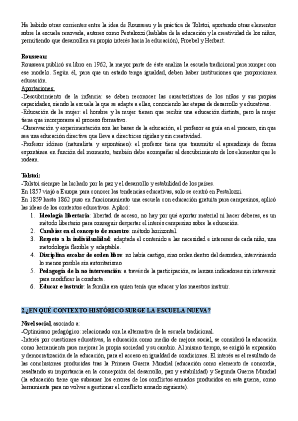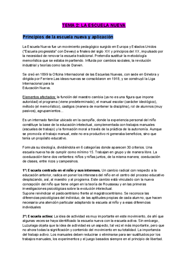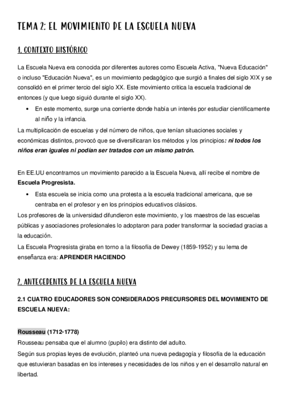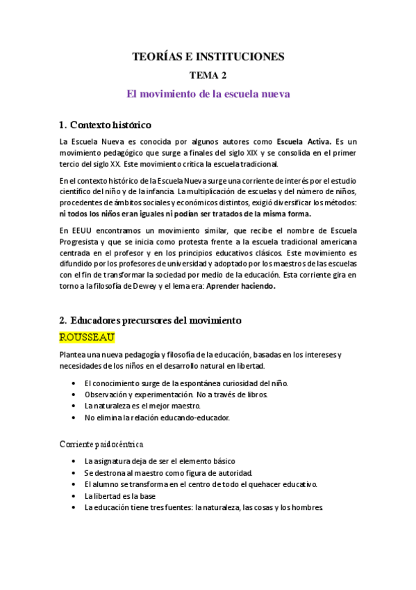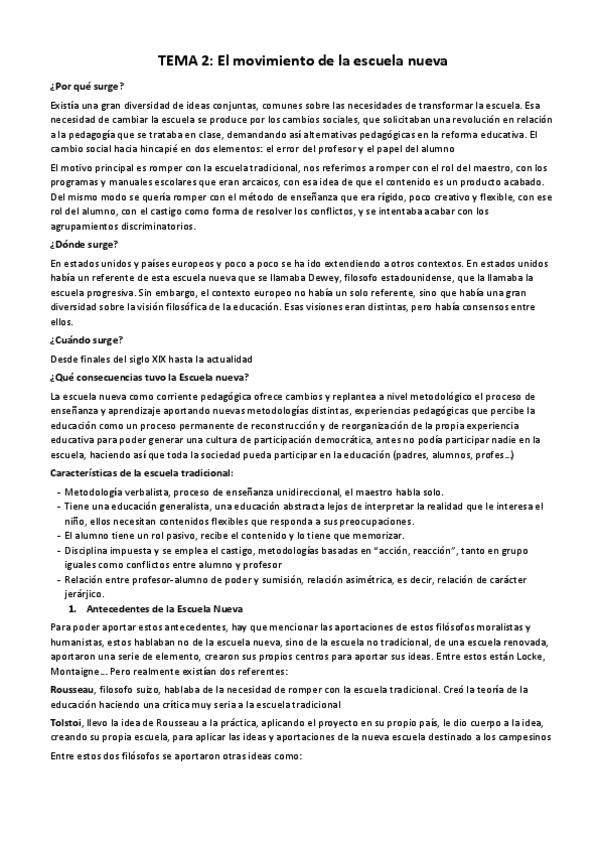 Tema 2 de TICE sobre la escuela nueva y los autores. Incluye anotaciones del docente comentados en clase.